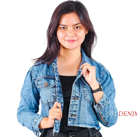 551 Jaket Jeans Crop Wanita LD 120 Model Rawis Muat BB 45 - 70 Kg