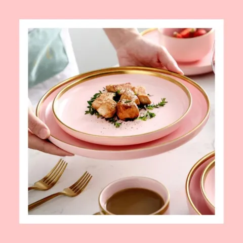Piring Cantik Pink Gold Plate Cafe Properti Foto Size Large
