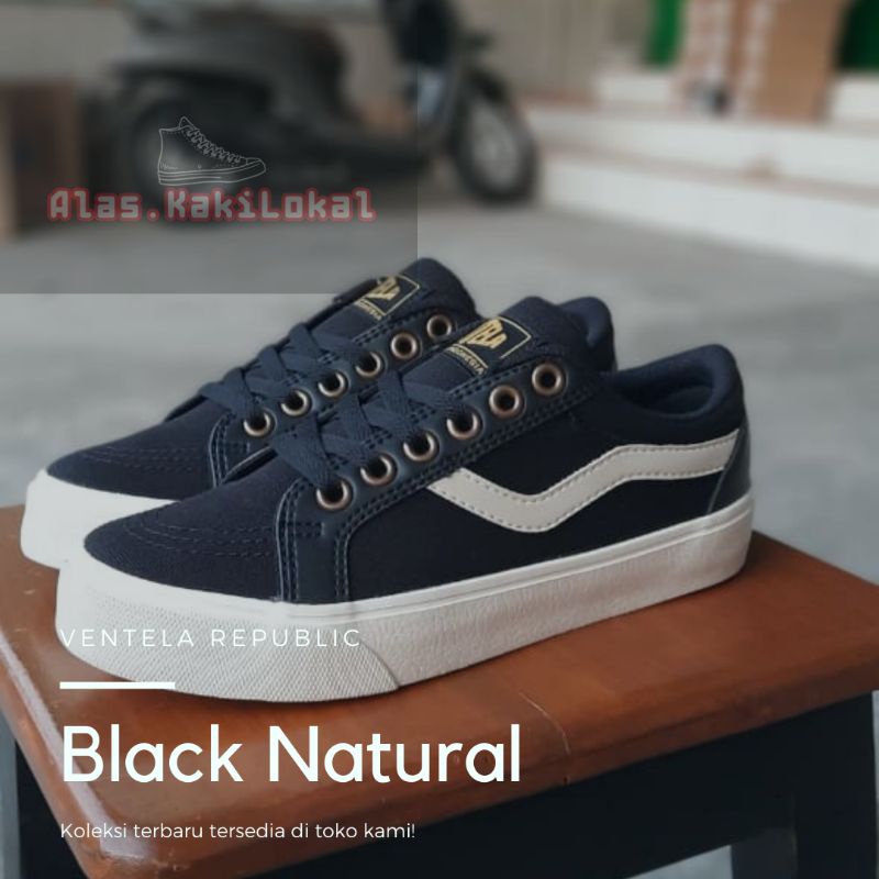 Sepatu Ventela Republic Black Natural Low Original