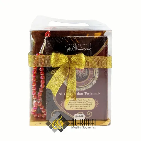 Paket Souvenir Sarung Tenun Songket Fantasy & Al Quran Terjemah Ukuran Kecil - Sofenir Pengajian Tahlilan Aqiqah Hajatan Khitanan | Hadiah Kado Ulang Tahun Wisuda Cowok | Hampers Oleh Oleh Haji Umroh