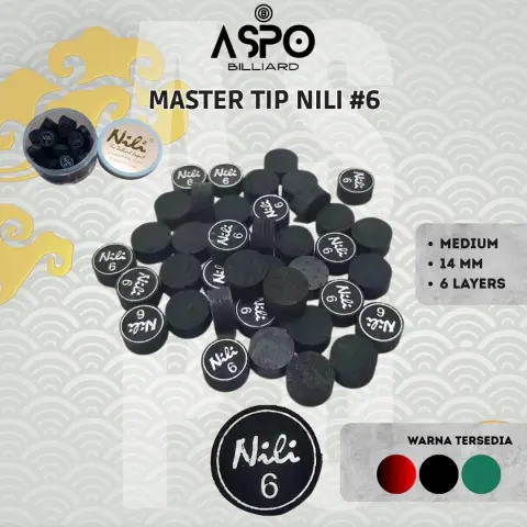 Master Tip Billiard Nili #6 Black & Green Play Cue Medium Cue Tip 14mm 14 mm
