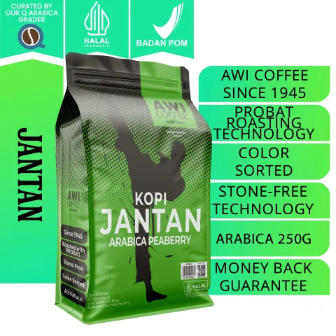 Awi Coffee JANTAN Peaberry 250Gr | Arabica Peaberry Roasted Bean | Grade 1 Kualitas Ekspor