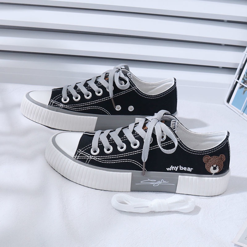 {COD/BAYAR DITEMPAT} Sepatu Wanita Sneakers Tali Kanvas Model Terbaru 2021 Trendy dan Elegan FreeBox