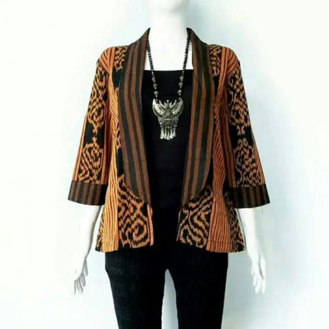 Best Seller Blazer Kerja Tenun/Outer Batik Kerja Wanita Modern/Atasan Batik Kantor Tenun