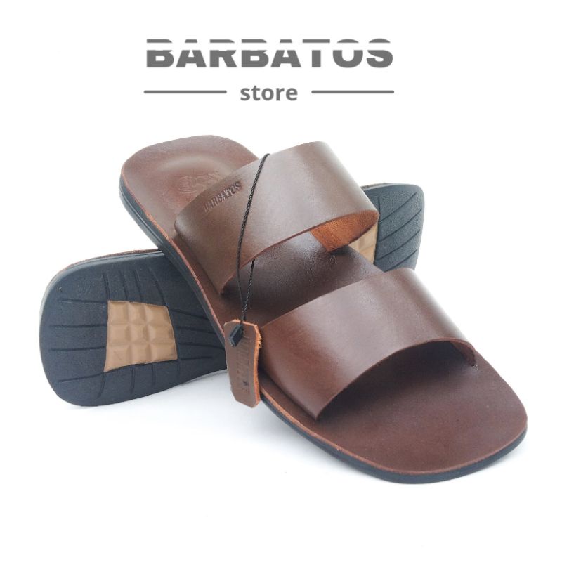 BARBATOS | Sandal Kulit Asli Double Strap | Sandal Kulit Asli Ban Dua Pria | Sandal Kulit Asli Pria | Sandal Kulit Casual | Quatro