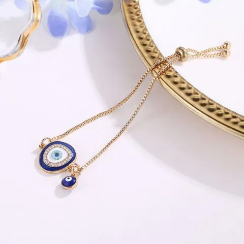 Gelang Tangan Rantai Aksen Mata Iblis Hias Kristal Biru Turki