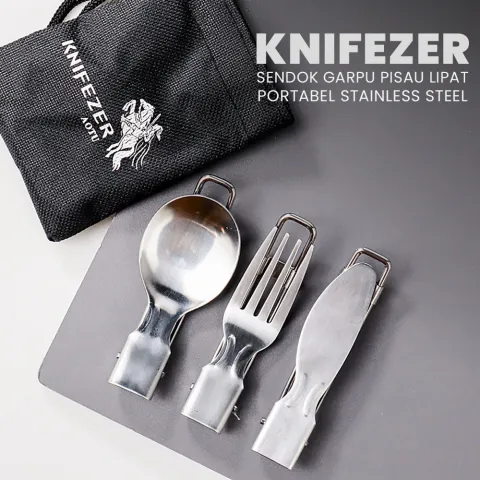 KNIFEZER Set Alat Makan Sendok Garpu Pisau Lipat Portable Cutlery
