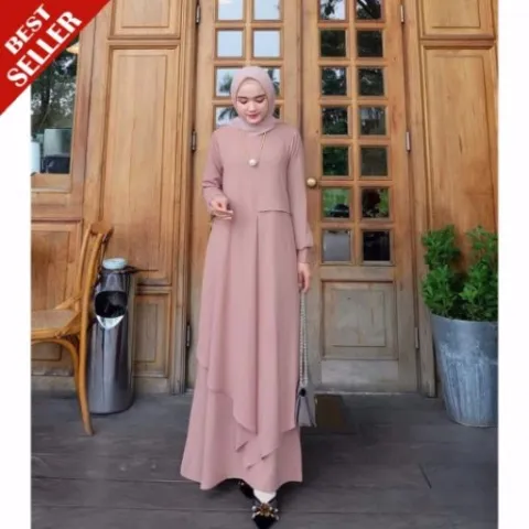 Baju Gamis Wanita Muslim Terbaru Miza Dress Murah Berkualitas - Mocca, M