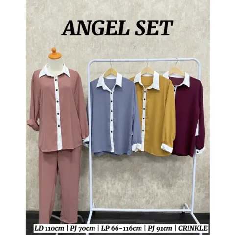 ANGEL ONE SET | SETELAN CRINKLE POLOS SETCEL SAYAP BELAKANG KOMBINASI PUTIH ALL SIZE FIT XL BUSUI GROSIR