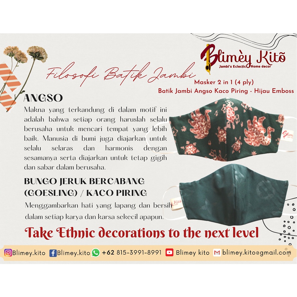 Masker Kain 2 in 1 (4 ply) Batik Jambi Angso & Kaco Piring - Hijau Emboss