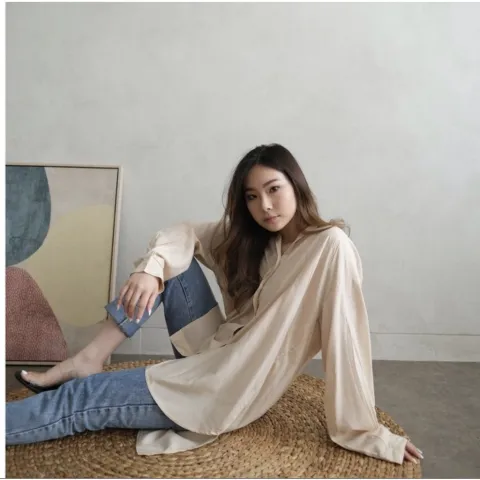 Carla Oversized Shirt - Kemeja Oversize Wanita Lengan Panjang Polos