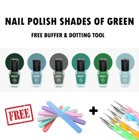 BRASOV Kutek Cat Kuku 12 Pcs 8 ml Shades Of Green Nail Polish BPOM (FREE Dotting Tool n Buffer)