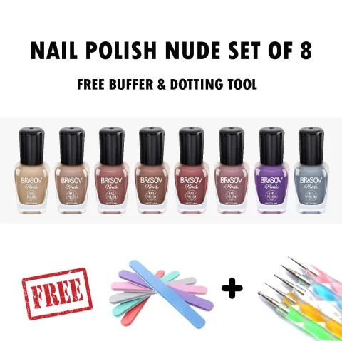 BRASOV Kutek Cat Kuku Nude 8 ML BPOM Nail Polish Kutex Kuteks 8 PCS (FREE Dotting Tool n Buffer)