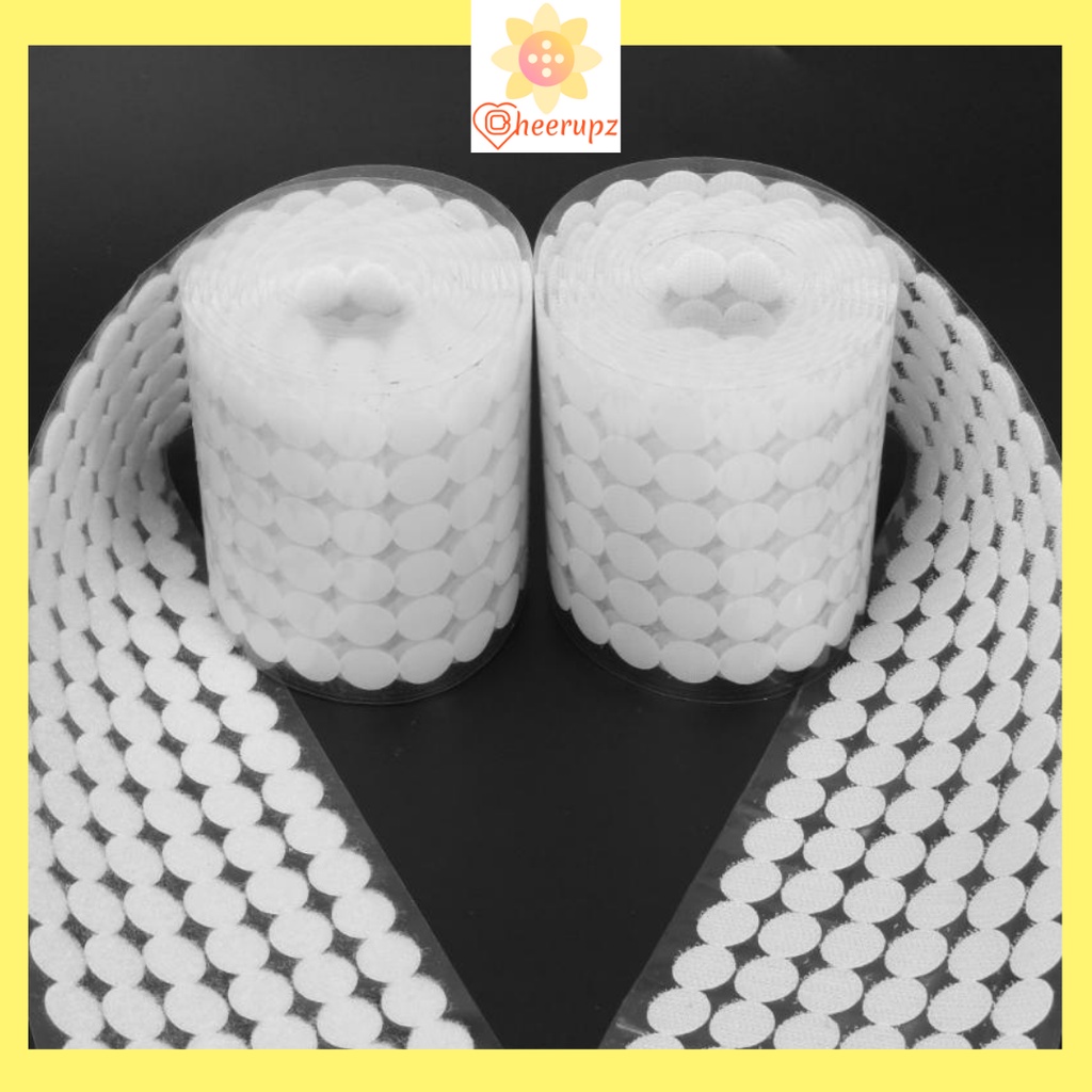 VELCRO BULATDOT TAPE 10/15/20/25 mm HITAM/ PUTIH/ TRANSPARAN Perekat Serbaguna kreativitas anak, DIY, printables, kerajinan tangan