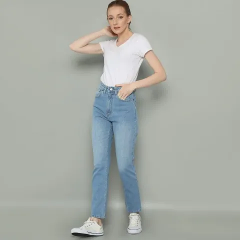 Celana Boyfriend Highwaist Jeans P03 - Biru Muda Scrub