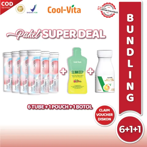 [LIVE] Cool-Vita Collagen Paket Cerah Bersinar 6 Botol Kolagen + 1 botol Chewable Orange FREE 1 Pouch Slimkeep Fiber Detox Drink
