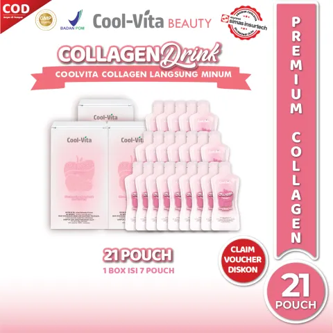 Cool-Vita Collagen Ready To Drink 3,000mg Rasa Apel, Persik dan Blueberry 3 Box