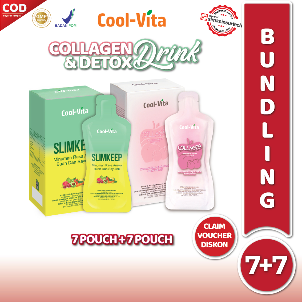 Cool-Vita Premium Collagen 1 Box dan 1 Box Slimkeep Fiber Detox Drink Langsung Minum Total 14 Pouch