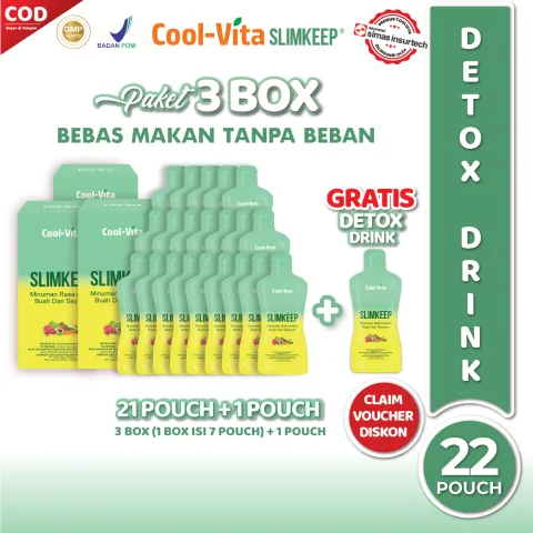 Cool-Vita Slimkeep Fiber Detox Drink Minuman Rasa Ekstrak Buah dan Sayuran 3 Box + 1 Pouch