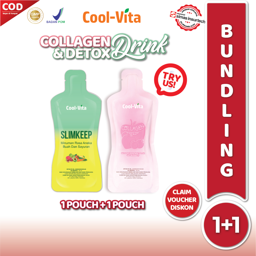 Paket Try Us Cool-Vita Collagen Premium Langsung Minum Beauty Drink Kolagen 3000mg Rasa Apel, Persik & Blueberry Ready to Drink