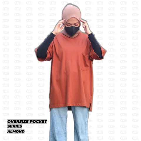 Kaos Polos Lengan Pendek Oversize Pocket Almond Cotton Combed 24s