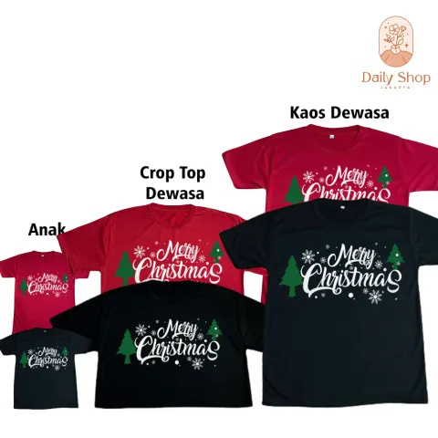 [Couple Keluarga] Kaos Dress Model Merry Christmas Tree Natal Wanita Pria Anak Ibu Bapak Bahan Katun Couple Keluarga Tshirt Crop Tee Wanita