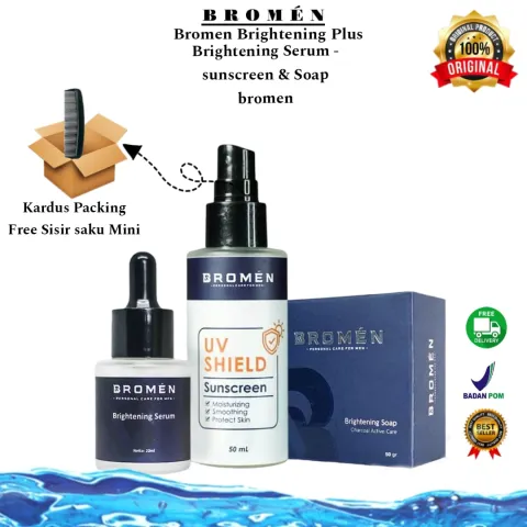 BROMEN Paket BRIGHTENING PLUS ( Brightening Soap + Brightening Serum + UV Sunscreen)