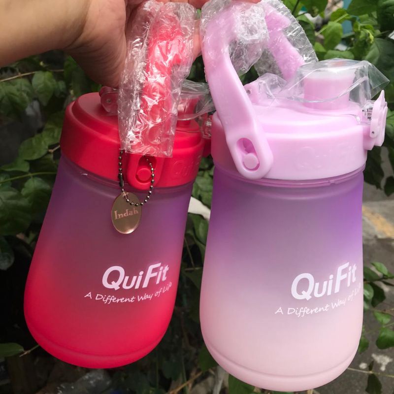 READY STOCK QuiFit Ember Botol Minum/ Thumbler Motivasi Penanda Waktu 1Liter Phone Holder Sedotan