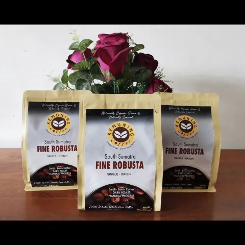 KEMUNING FINE ROBUSTA SINGLE ORIGIN SOUTH SUMATRA WHOLE BEAN / BIJI KOPI FINE ROBUSTA SUMATERA SELATAN Net Wt 250g (8,8 oz) - DARK ROAST, NATURAL PROCESS