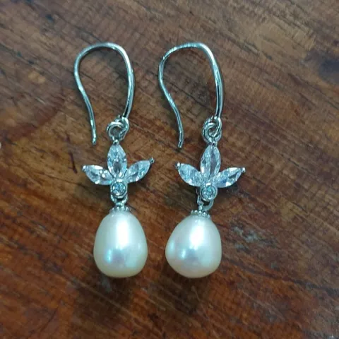Anting Mutiara Air Tawar Asli dgn Swarovsky Element