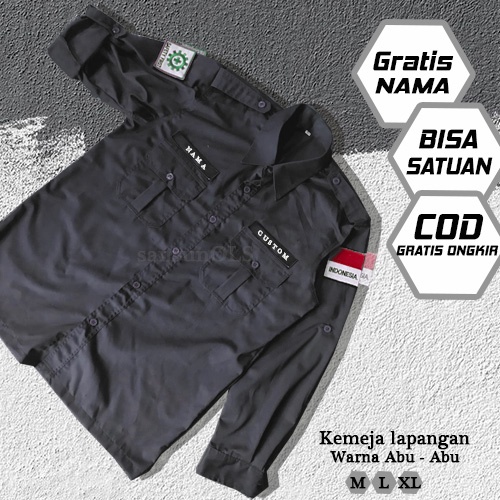 COD KEMEJA LAPANGAN PDL PDH ABU ABU FREE NAMA POLOSAN MURAH