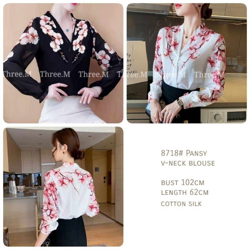 Baju Blouse Vneck Premium Pansie 8718 Wanita