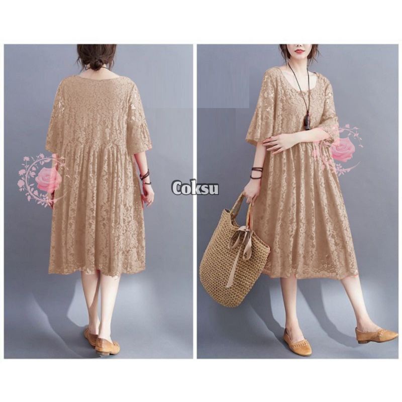 Baju Dress Brukat Jumbo Sherlina Wanita