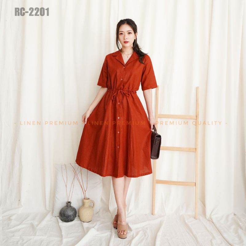 Baju Dress Linen Premium LD 98 Avela Tali Serut Wanita