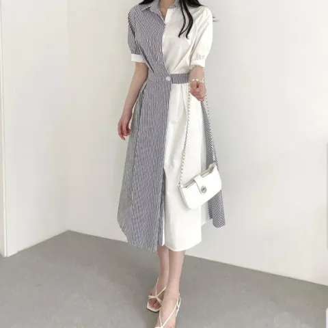 Baju Dress Midi Salur Samire Wanita (Free Pulsa)