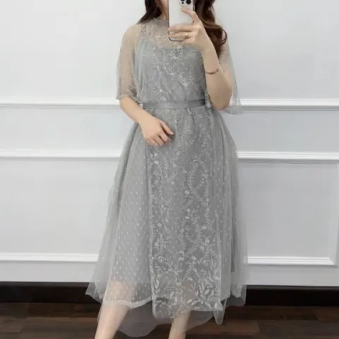 Baju Dress Outer Brokat Tile Tutu Jumbo Lorenza Wanita (Free Pulsa)