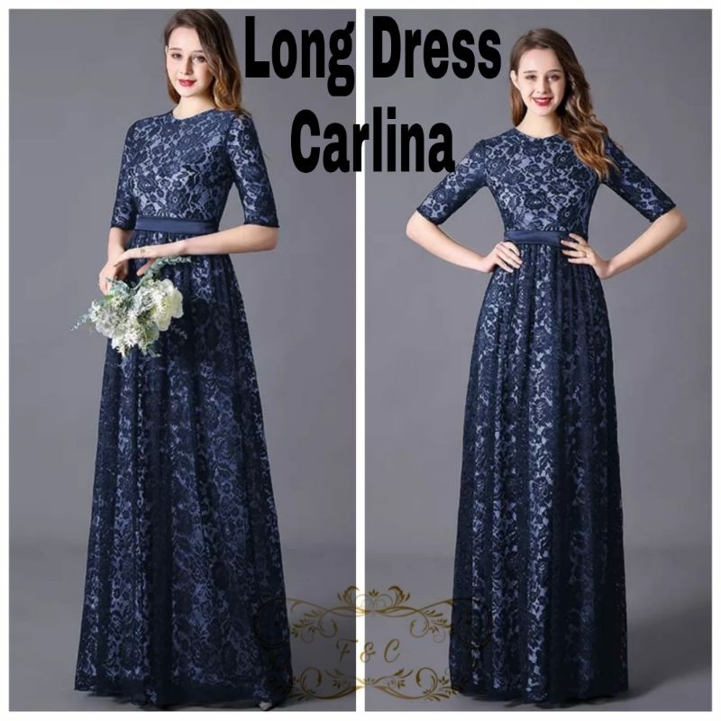 Baju Dress Panjang Brukat Furing Carlina Tali Obi Wanita