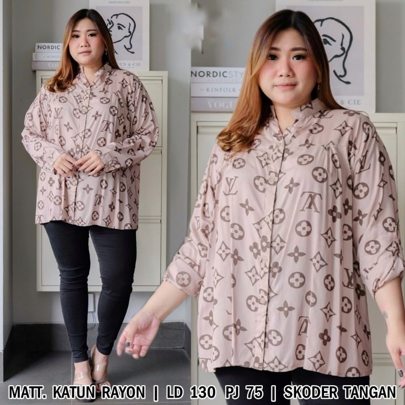 Baju Kemeja Jumbo Katun Rayon Adem Seplivya Tangan Skoder Wanita