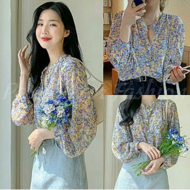 Baju Kemeja Lengan Panjang Premium Bloms Terbaru Wanita