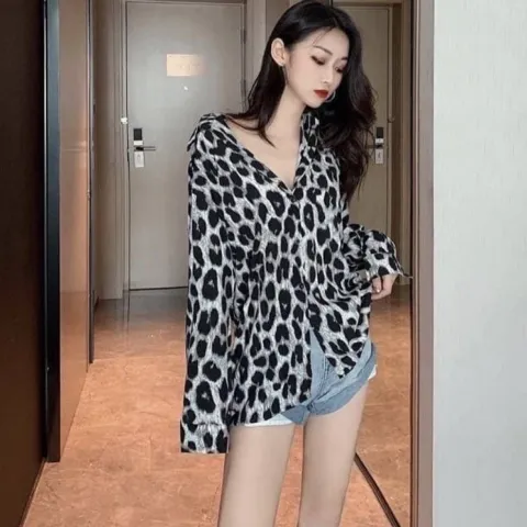 Baju Kemeja Loreng Jumbo Lengan Panjang Wanita