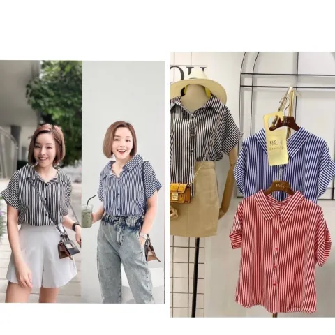 Baju Kemeja Salur Lengan Pendek Yuvien Wanita
