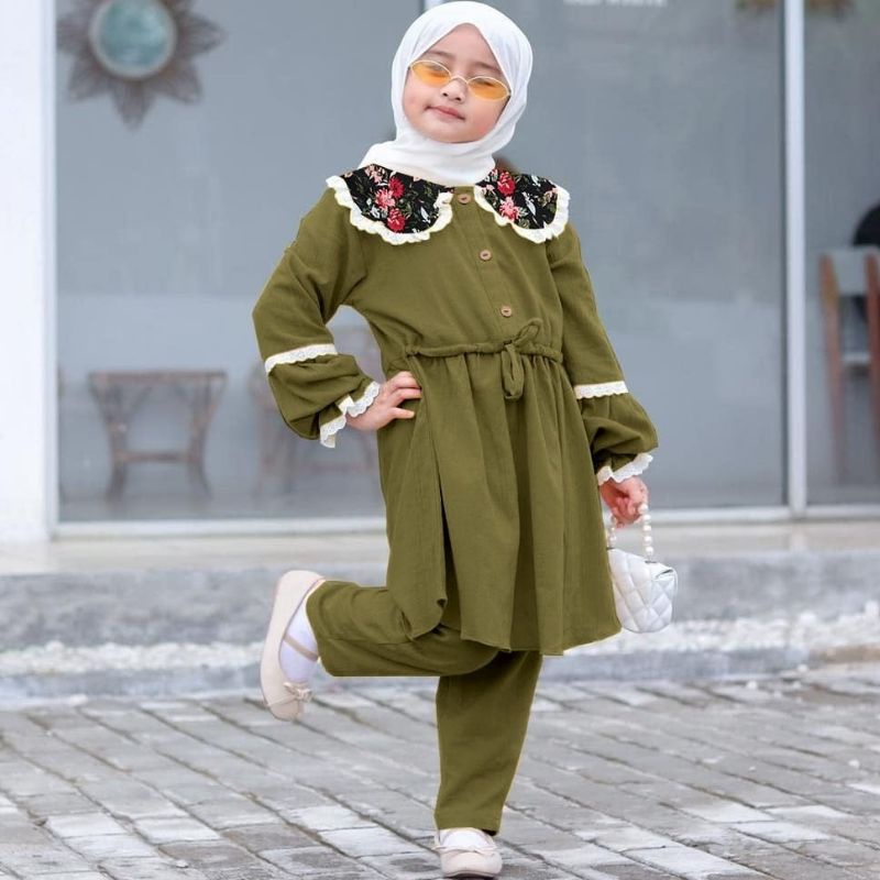 Baju Setelan Celana Muslim Valeqas Renda Anak Perempuan