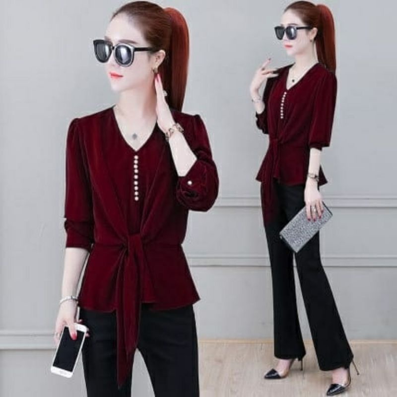 Baju Setelan Celana Tameta Tali Ikat Terbaru Wanita