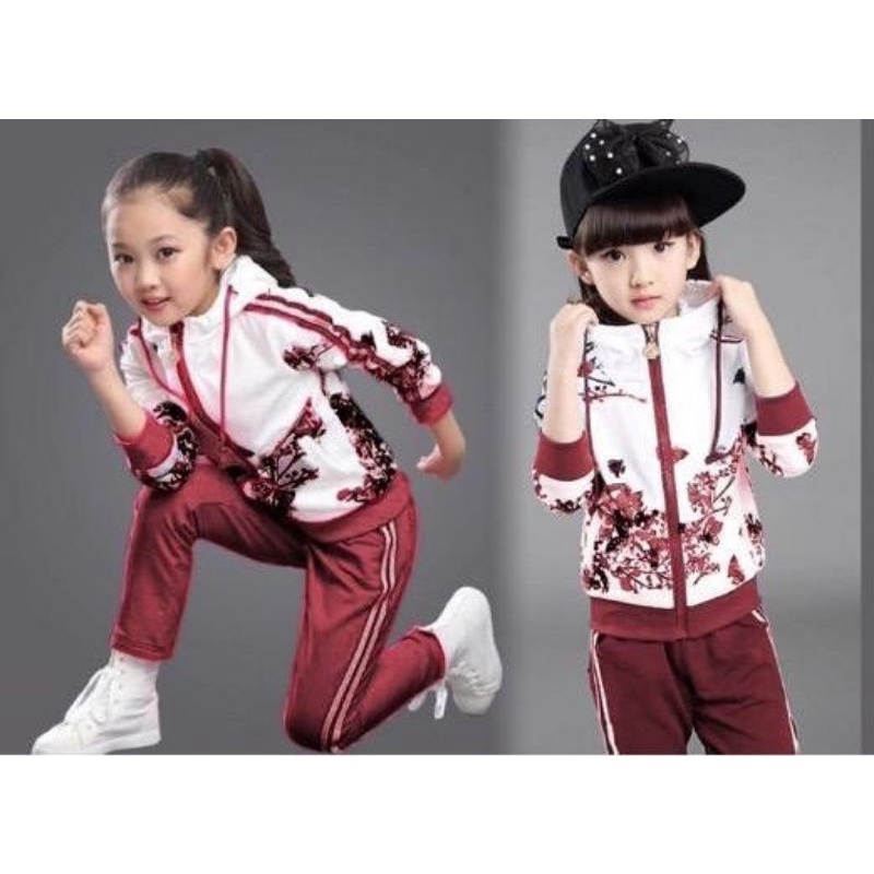 Baju Setelan Training Hoodie List Ceria Anak Perempuan