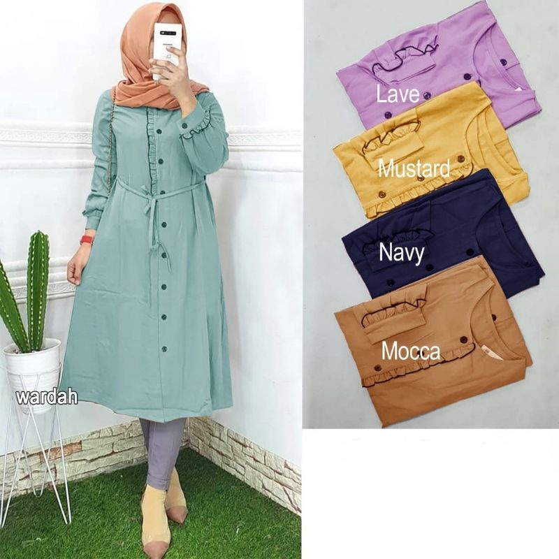 Baju Tunik Muslim Full Kancing List Pita Lenatha Terbaru Wanita