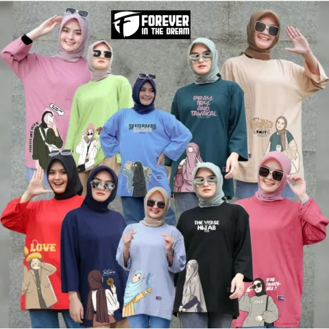 Atasan Wanita Oversize Motif DTF Terbaru Kaos Muslimah Lengan Panjang 7 per 8 Adem Kaos Dewasa