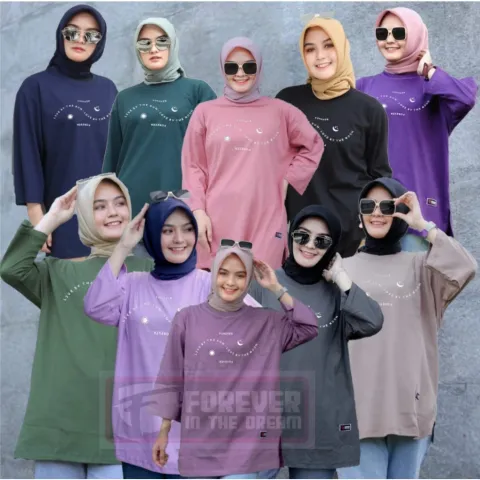 Kaos Basic Oversize Motif DTF Lengan Panjang 7 per 8 Atasan Wanita Kekinian Bahan Combed 24s T-Shirt