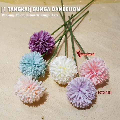 [1 Tangkai] Bunga Dandelion Artificial / Bunga Pom Pom Plastik