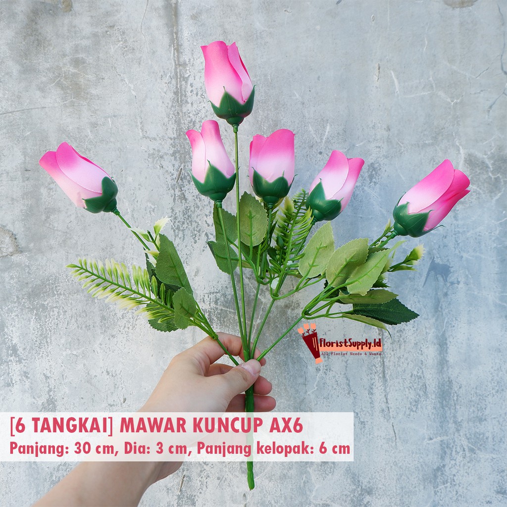 [6 Tangkai] Bunga Mawar Kuncup AX6 Artificial Import
