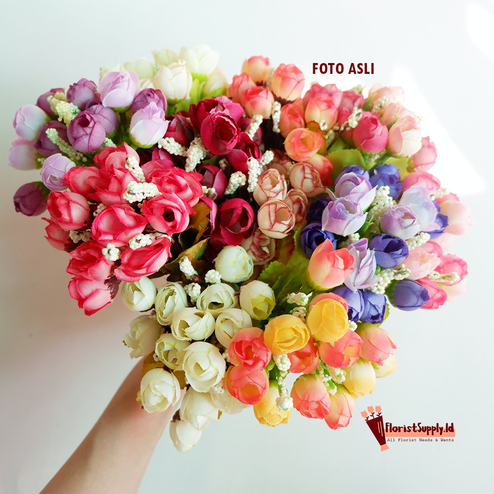 Mini Mawar Kuncup Kombinasi Artificial /Bunga Mawar Plastik (1 kg isi 50 pcs)